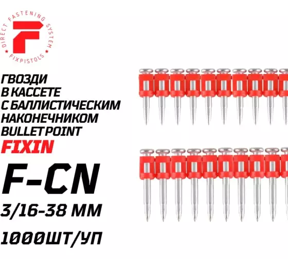 Гвозди усиленные FIXPISTOLS серия F-CN используются для пристрелки с помощью газового пистолета для установки техникой прямого ударного монтажа.