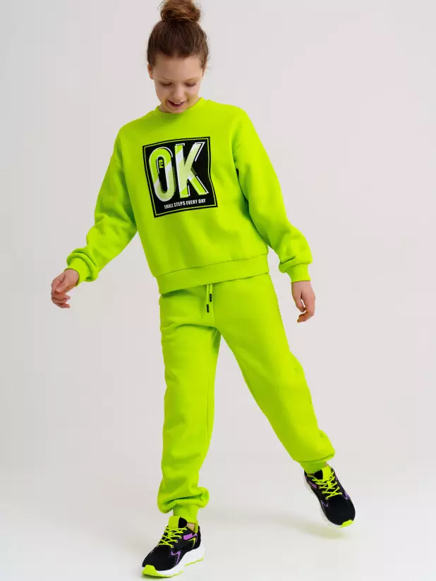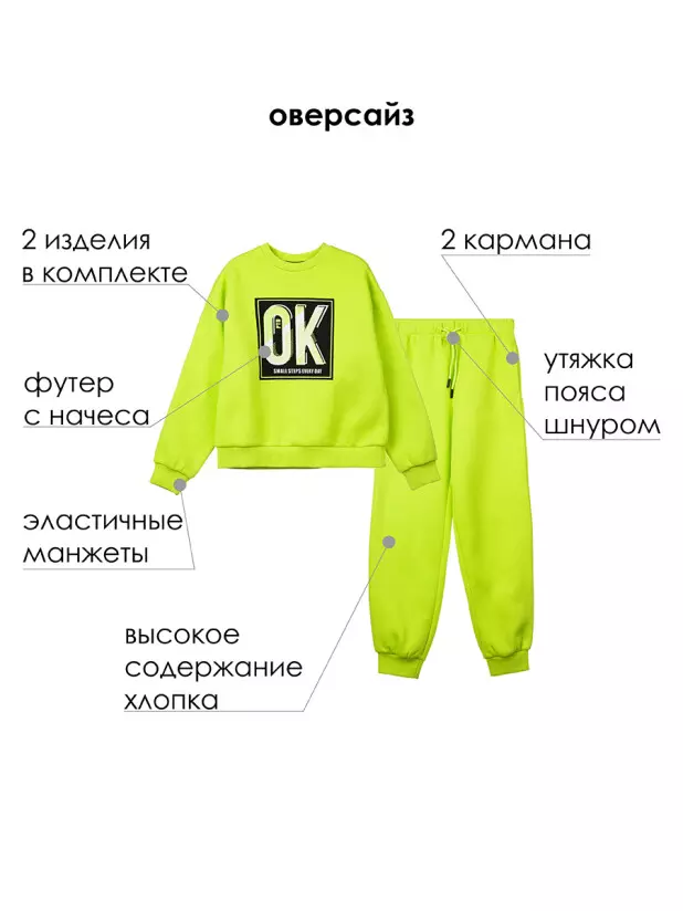 Утепленный спортивный костюм в школу для девочки подростка- необходимая составляющая для занятий физкультурой и спортом. Спортивный костюм из футера с начесом с высоким содержанием хлопка для школьницы отлично подойдет для физкультуры как на улице, так и в зале. Модный оверсайз свитшот для девочки подростка будет хорошим практичным приобретением в преддверии учебного года. Спортивные штаны свободного силуэта с удобными карманами для девочки. Брюки на резинке с дополнительной утяжкой шнурком.