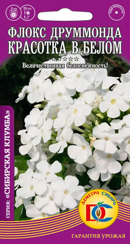 Семена цветов Флокс Красотка в белом, Деметра-Сибирь 0,1 г ц/п